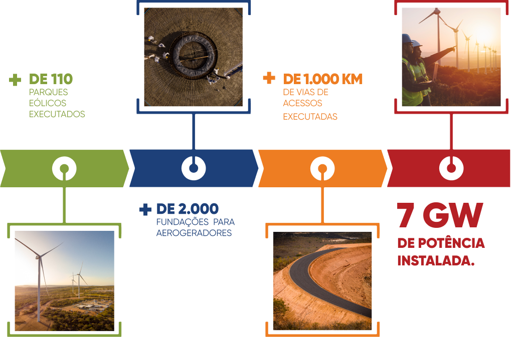 Um dos grandes focos de expansão da empresa é a construção da infraestrutura necessária para a implantação de parques eólicos, em diversas localidades do Brasil.